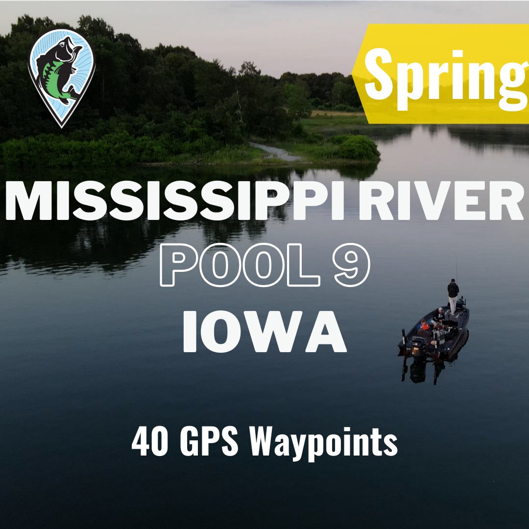 This breakdown includes 40 waypoints on Mississippi River Pool 9, Iowa focused on March to June. The spots are focused on 4 areas of the lake. The breakdown also includes detailed descriptions of each area, recommend conditions for when you should fish each area and bait recommendations for each spot.