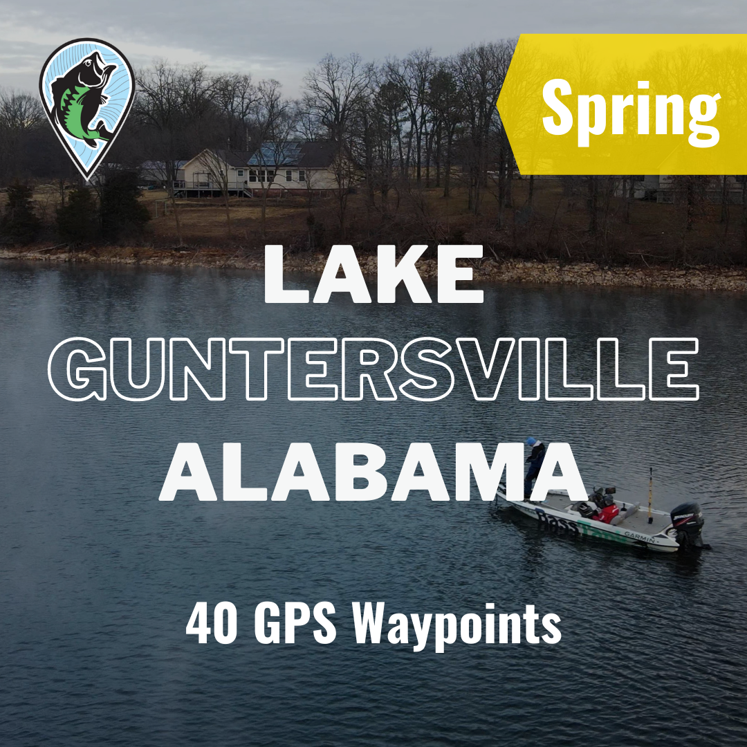 This breakdown includes 40 Spring waypoints on Lake Guntersville, Alabama focused on March - May. The spots are focused on 4 areas of the lake. The breakdown also includes detailed descriptions of each area, recommend conditions for when you should fish each area and bait recommendations for each spot.